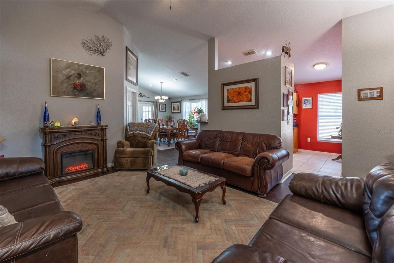 IT IS NOT BRAND NEW BUT IT IS ON THE PERFECT GOLF COURSE LOT WITH PAVED ROAD! NO HOA & NO Flood Zone! 3 Bedroom and 2 Bathrooms. The Master bedroom features a tray ceiling with fan and has French doors opening out to the back porch. The master bathroom has walk-in closet, walk-in shower, jetted tub, and dual sinks. Living room, and Dining room are open concept with high ceilings and fan. The two guest bedrooms that are separated enough from the master are both nice size rooms with vinyl flooring, and ceiling fans. The guest bathroom has a shower/tub combination. The Kitchen has plenty of counter space with a bar height area to sit and eat and a small breakfast nook. Stainless steel Refrigerator, Range, Microwave and dishwasher. Laundry room is conveniently inside. Vinyl flooring throughout! The formal dining room has a new and beautiful huge picture window to let in that natural lighting and offers French doors opening to the back lanai area as well. The home is equipped with security cameras. Well and Septic are strategically placed in back and front of home, respectively. Septic was pumped January 2026. Beautiful plants surround the house with fenced backyard for your furry family members that offers security for your pets and peace of mind when they are outside playing. Part of the fencing includes a dog run to keep them separated if needed. The exterior walls are made of vinyl siding that is freshly washed and cleaned. Just minutes to the charming town of Williston for shopping, dining, schools and only 30 minutes to HITS, WEC, Ocala, Gainesville and Bronson which is our county seat! Beautiful sunsets across the back yard overlooking the golf course that are to die for. There is a spa tub on the lanai that can go with the home if wanted. High and dry and no HOA. Cannot get enough of THE FEEL OF COUNTRY LIVING HERE! Schedule a viewing today!