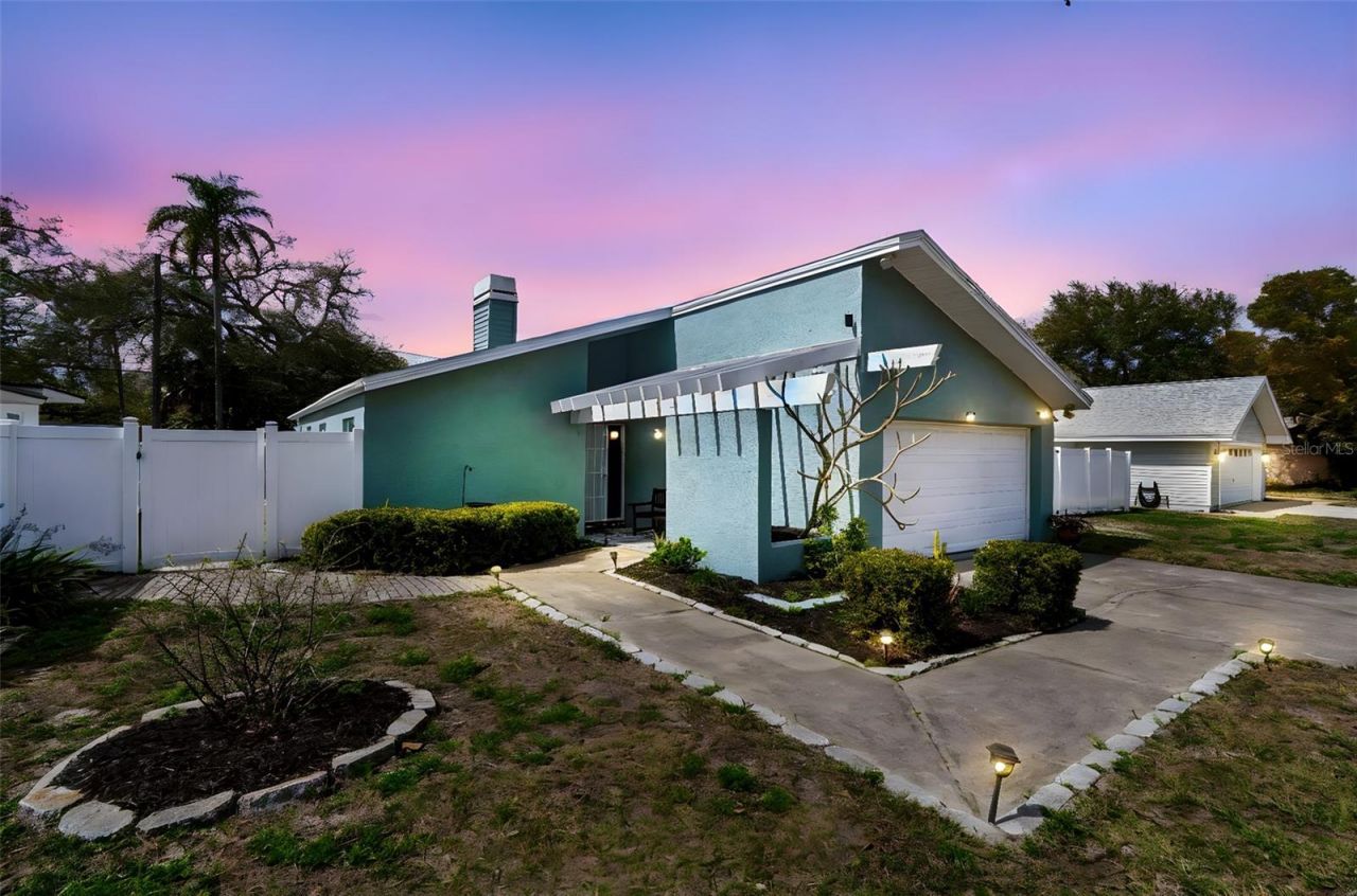 Ahhh... this is the home you have been waiting for - the one that gives you the warm and fuzzies when you walk in the door! This lovely 3 bedroom, 2 full bath, 2 car garage home has been well taken care of and has many updates including: new exterior paint (2025), new HVAC (2023), new roof (2018), new water heater (2023), remodeled kitchen (2018), new fridge & stove (2020), new washer (2024), new dryer (2019), backyard landscaping (2025), new 8x15 shed (2021), Pergo flooring in all bedrooms (2019), new garage door opener (2019), primary bath has new soaking tub, vanity & toilet (2024) and guest bath has new Bathfitters tub surround, new toilet and vanity (2021). The updated kitchen has wood cabinets & granite countertops. The kitchen opens up to the oh-so-cozy living room with newly remodeled wood-burning fireplace. The open floor plan also includes the dining room with a very handy and well placed dry bar with a wine fridge! All 3 bedrooms have been refreshed with paint and Pergo flooring and both bathrooms have been updated with new toilets, vanities and tubs! The outside of the home has been updated as well! Enjoy the various spots in the newly landscaped private yard to relax and recharge! You can keep all your toys & tools in the new 8x15 shed! And another bonus - the garage has attic storage via a pulldown staircase! Not only is this home in a charming neighborhood with no HOA and in a no flood zone, it is so close to so many good things! The beaches are minutes away - Pinellas Trail, Taylor Park, golf courses, all kinds of shopping, a multitude of dining options - are all so close! So many options to mention! Please come see this special home today - you won't be disappointed!
