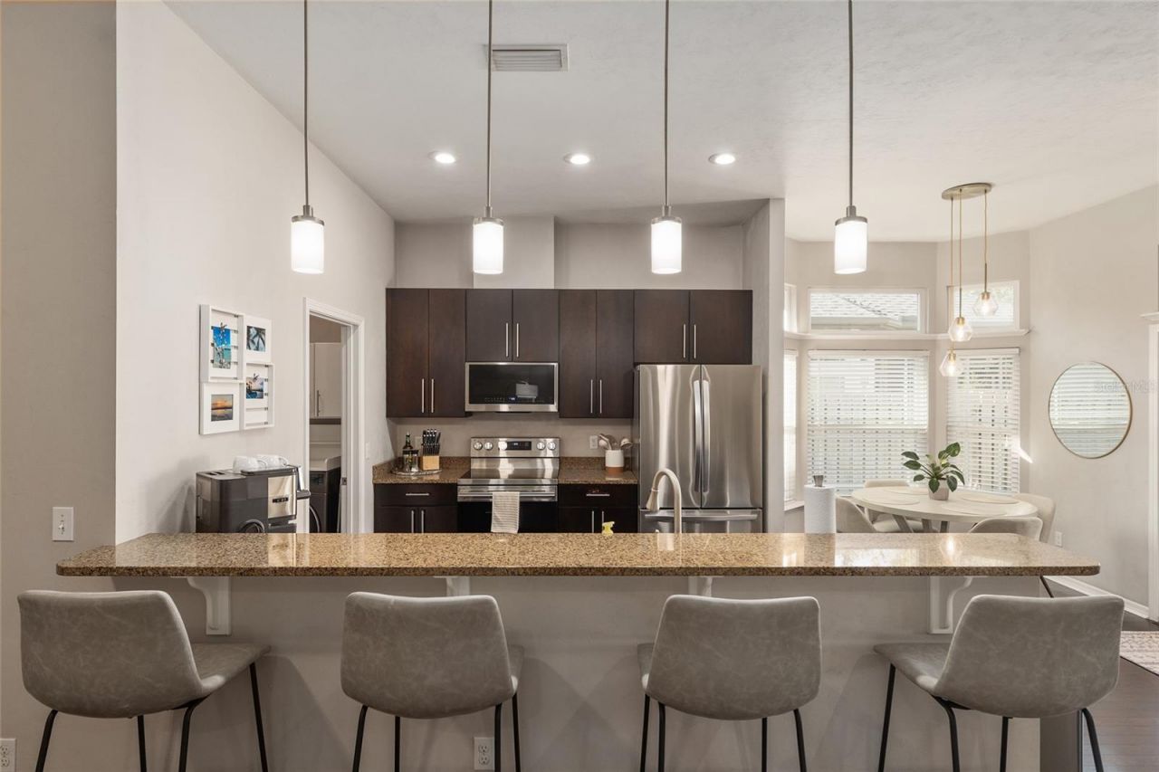 Located in the highly sought-after Longleaf community, this well-maintained 3-bedroom, 2-bath Tommy Williams 'Hamilton floor plan offers timeless design, smart energy efficiency, and everyday comfort. Inside, you'll find an open, split-bedroom layout with high ceilings and durable tile and wood flooring throughout - no carpet! The kitchen features granite countertops, solid wood cabinetry, recessed lighting, all 1 year old kitchen appliances, and a functional layout that flows seamlessly into the main living space, making it ideal for both daily living and entertaining. French doors lead to a covered rear lanai and fully fenced backyard, creating a private outdoor retreat perfect for relaxing or gathering with friends. The home also includes a 2-car garage with attic storage and an interior laundry room for added convenience. Built with energy efficiency in mind, features include a heat-block roof barrier, energy-efficient windows, and a tankless water heater, helping to keep utility costs manageable year-round. Residents of Longleaf enjoy resort-style amenities including a beach-entry pool, fitness center, playground, tennis courts, sidewalks, and community green spaces - all just minutes from UF, UF Health, Shands, shopping, and dining. Zoned for top-rated schools and situated in one of Southwest Gainesville's most desirable neighborhoods, this home offers the perfect blend of location, livability, and value.