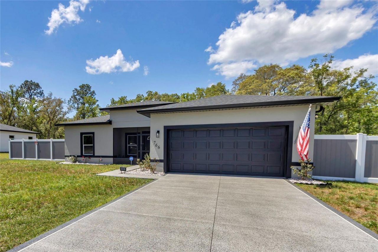 One or more photo(s) has been virtually staged. Welcome to this beautifully built 2024 home offering modern comfort, thoughtful upgrades, and exceptional privacy. Featuring 4 spacious bedrooms and 2 bathrooms, this property is designed for both everyday living and effortless entertaining. The heart of the home is the stunning kitchen, complete with quartz countertops, stainless steel appliances, a stylish tile backsplash, pendant lighting, and a spacious island. The kitchen flows seamlessly into the open great room, creating an inviting space perfect for gatherings. Step outside to enjoy the screened lanai overlooking a large, fully fenced backyard-ideal for pets, play, or relaxing in total privacy with no rear neighbors. A pergola has been added for additional entertainment space outdoors and an outdoor shed adds extra storage and functionality. The private master suite features two walk-in closets and an en-suite bathroom with dual sinks, quartz countertops, a garden tub, and a large, tiled walk-in shower. Additional features include double-pane tinted windows, a wired security system, gutters, fresh exterior paint, and flood lighting for added peace of mind. Located in Marion Oaks, residents enjoy optional access to a vibrant community center offering amenities such as basketball courts, tennis courts, pickleball, shuffleboard, beach volleyball, and a splash pad-perfect for an active lifestyle. This home combines modern finishes, privacy, and community living, ready for you to move in and enjoy.